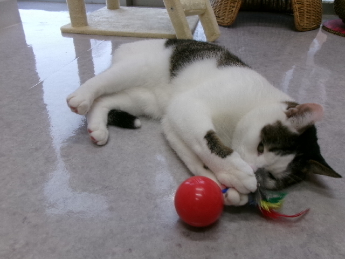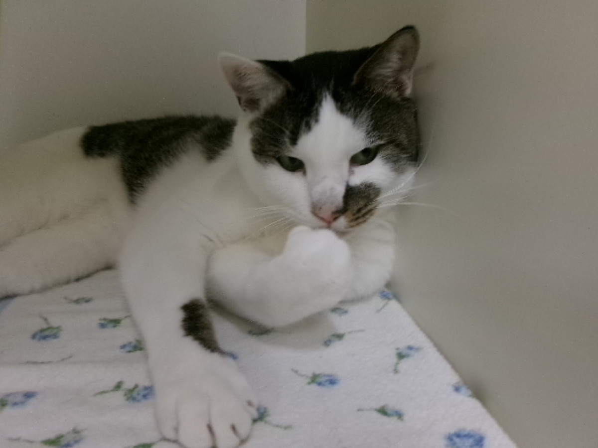 「あじぽん」くんは、大きなキジ白の男の子です。男の子らしいがっちりとした見た目ですが、性格は子猫のように甘えん坊で、どんな時も遊びを求めてきます。また、トイレのしかたについてこだわりが強く、独特な使い方をします。「あじぽん」くんをあたたかく迎えてくださる方を募集しています。