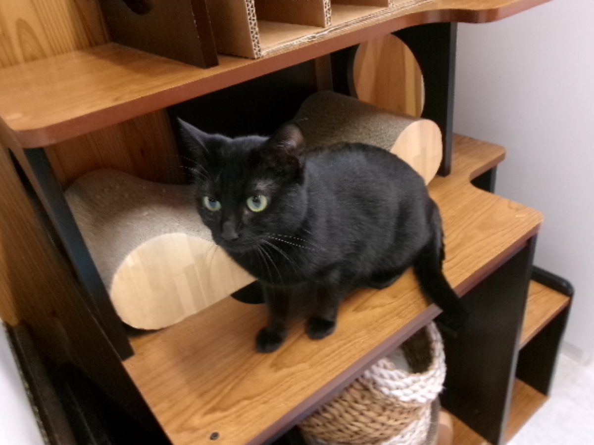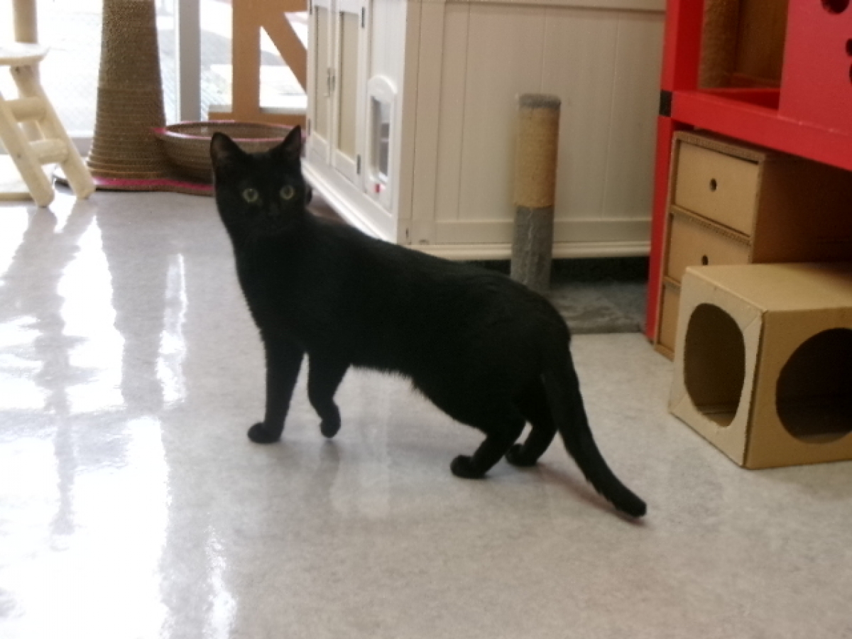 「クロミ」ちゃんは、真っ黒な毛並みに綺麗なライム色の目をした美人さんです。人懐こい性格で、スタッフを見つけると大きな声でアピールします。抱っこやおもちゃよりも、人がそばにいてくれることを喜ぶタイプの甘えん坊ちゃんです。「クロミ」ちゃんの性格を理解し、あたたかく迎えてくださるご家族を募集しています。
