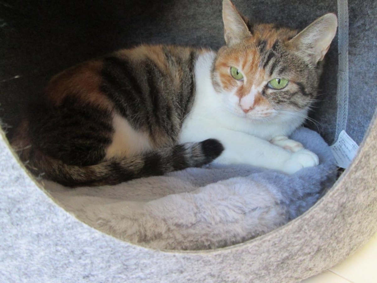 「マイメロ」ちゃんは、控えめでマイペースな三毛猫の女の子です。普段は周りをチラチラうかがいながら、安心するとほっとした様子で、気持ちよさそうに寝ています。撫でられることが好きで、「ゴロゴロ」と喉を鳴らしながら、笑みを浮かべるような顔つきで撫でられる姿が可愛らしいです。「マイメロ」ちゃんをあたたかく迎えてくださるご家族を募集しています。