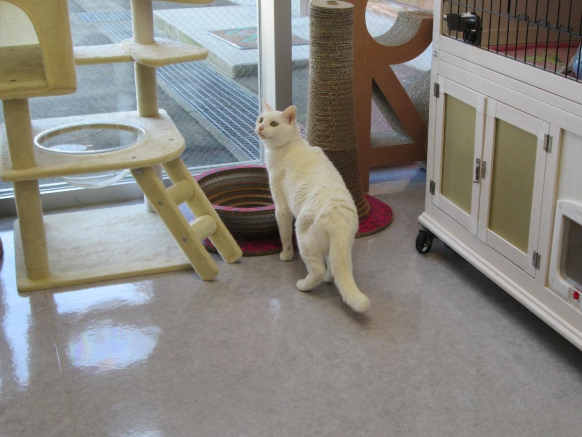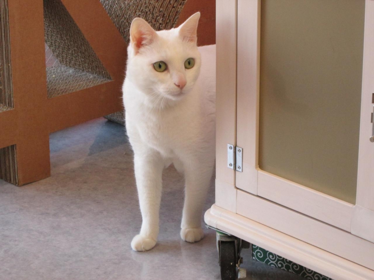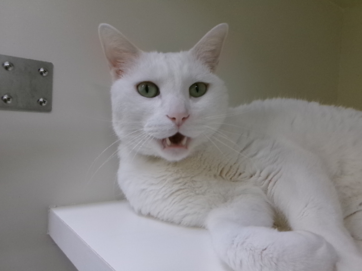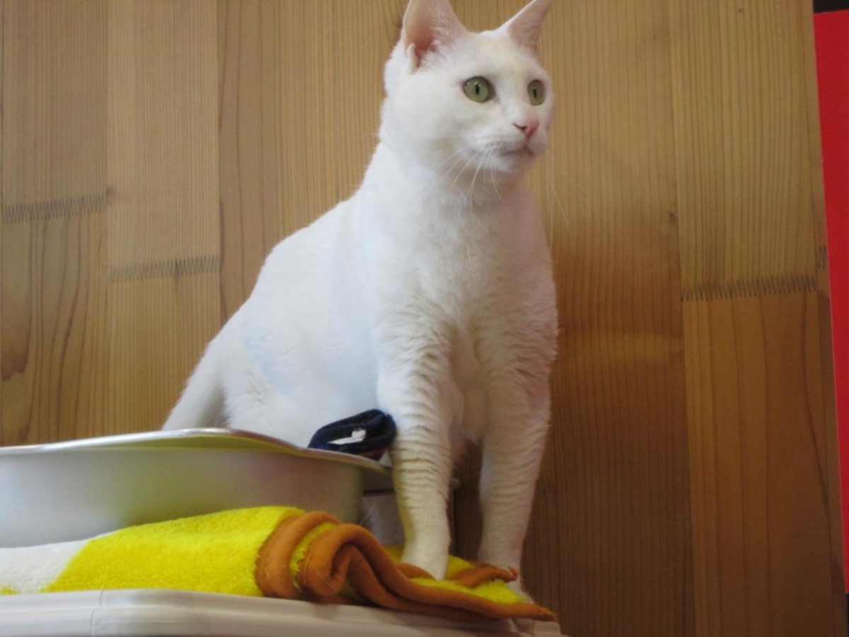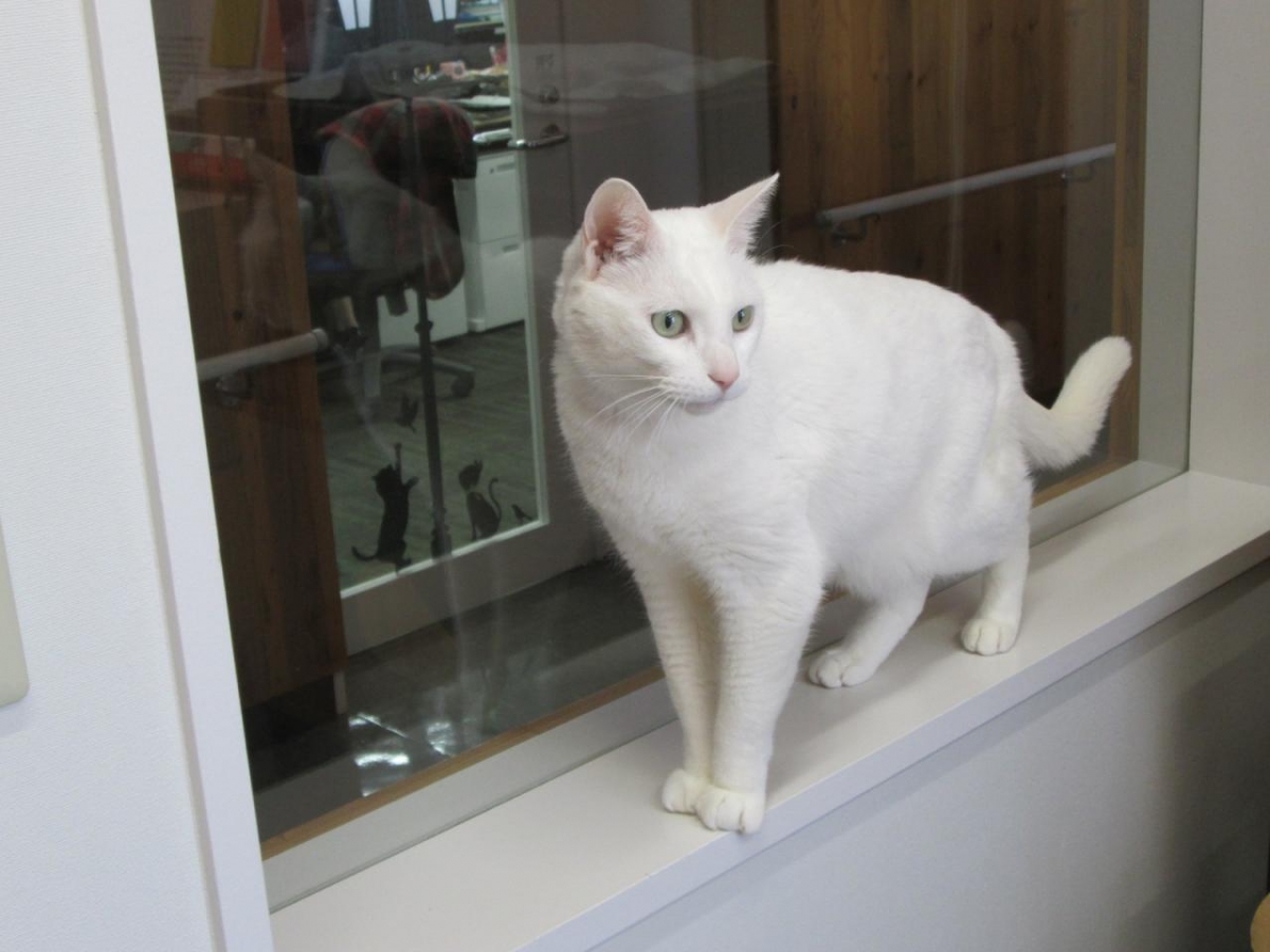 「まっぷる」くんは、グリーンアップルのような瞳の色をした白猫の男の子です。普段は、気持ちよさそうに寝ていることが多いのですが、目を覚ますと大きな声で鳴いてこちらにアピールします。なでるとごろんと横たわりうっとりとした様子を見せてくれます。「まっぷる」くんをあたたかく迎えてくださるご家族を募集しています。